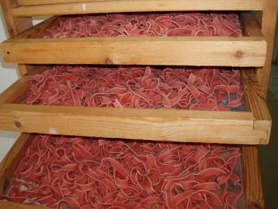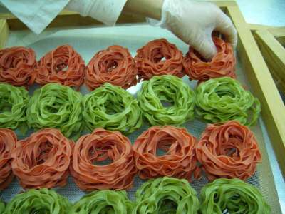 The pasta is dried in a natural way and can be treated as a fresh pasta( boiling time between 2 & 5 minutes). A delicious and very special product.